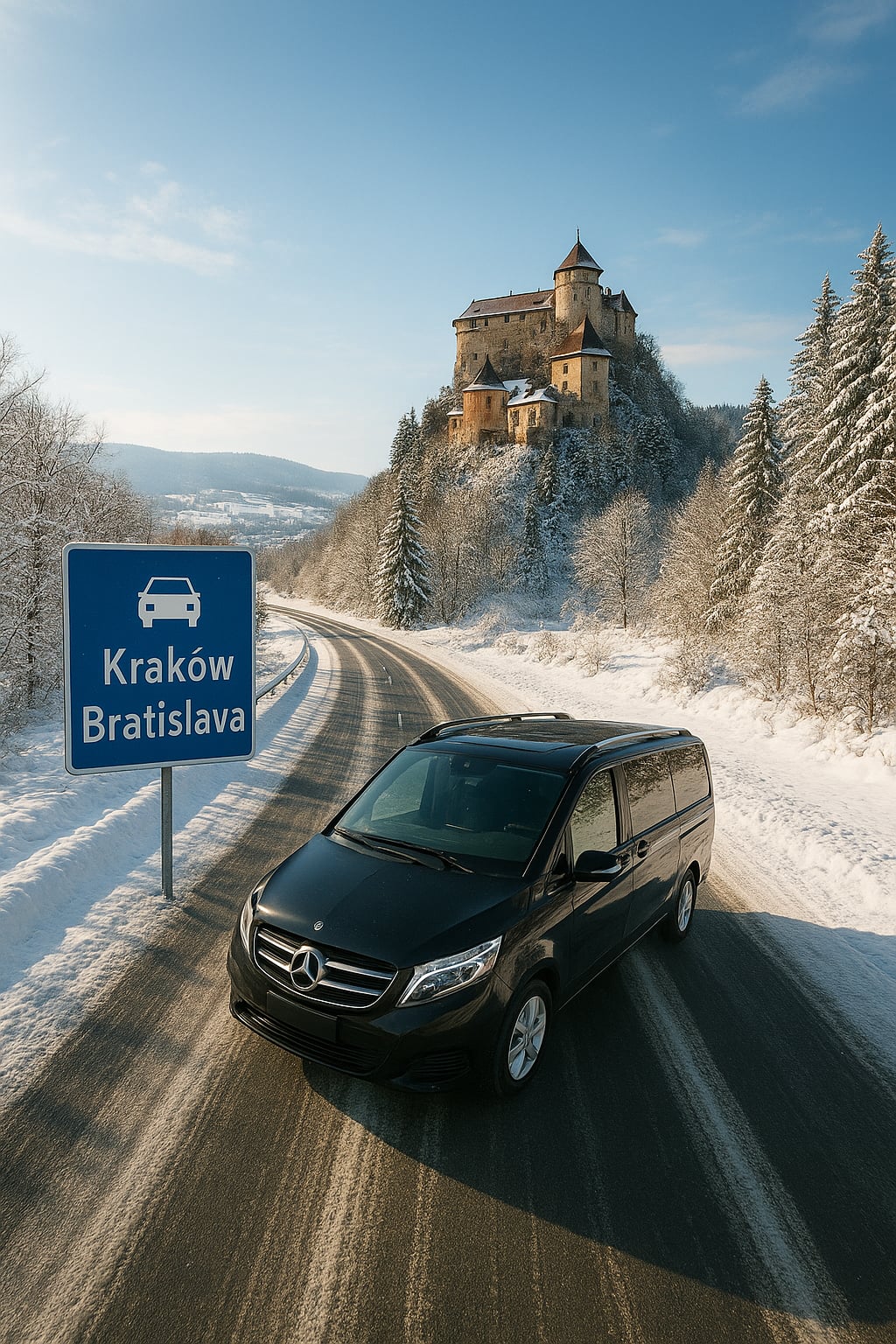 To save your money and time as well as make your trip more exciting, it's possible to visit winter Capital of Poland - Zakopane or Oravsky Castle in Slovakia which is on the way between Krakow and Bratislava. Our comfortable car or minivan with English speaking driver is ready for that private transfer everyday, also for drives at night.